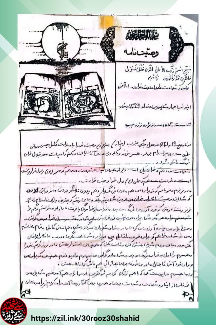وصیتنامه شهید جاویدالاثر جواد شاپوری📝