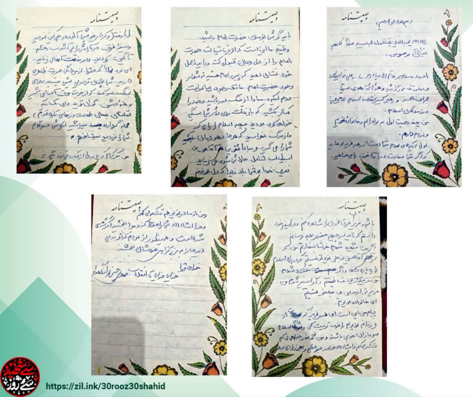 وصیتنامه شهید «حسین شمسیزاده»📝